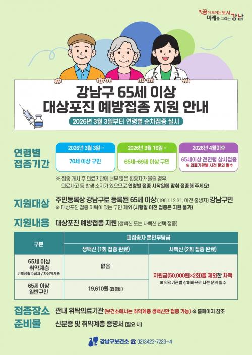 °­³²±¸, 65¼¼ ÀÌ»ó ´ë»óÆ÷Áø ¿¹¹æÁ¢Á¾ Áö¿ø È®´ë